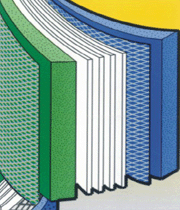 ◇第1级-纤维介质和介质滤网交替叠层,滤除较大的颗粒